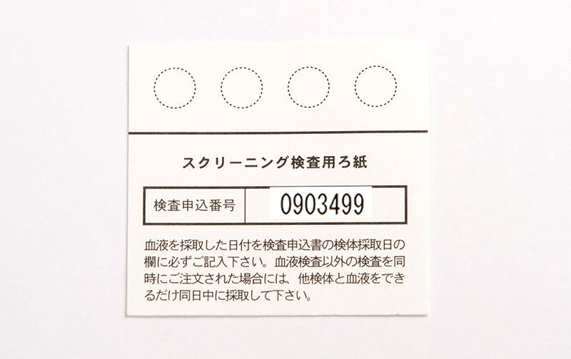 - ろ紙血検体と、使用済み消毒綿を同封すると検査不可となる場合があります。