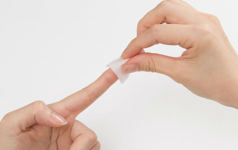 刺し傷をつけても血液が出にくい場合は、てのひらから指先に向かってしぼり出してください。
